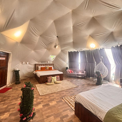 Ideal for families and groups, zanskar Jumbo Dome is one of a kind large 8 meter dome which can accomodate upto 5 people easily.